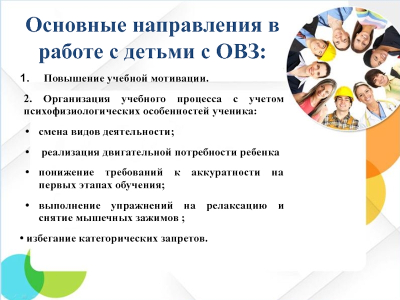 Слайд 12Основные направления в работе с детьми с ОВЗ: