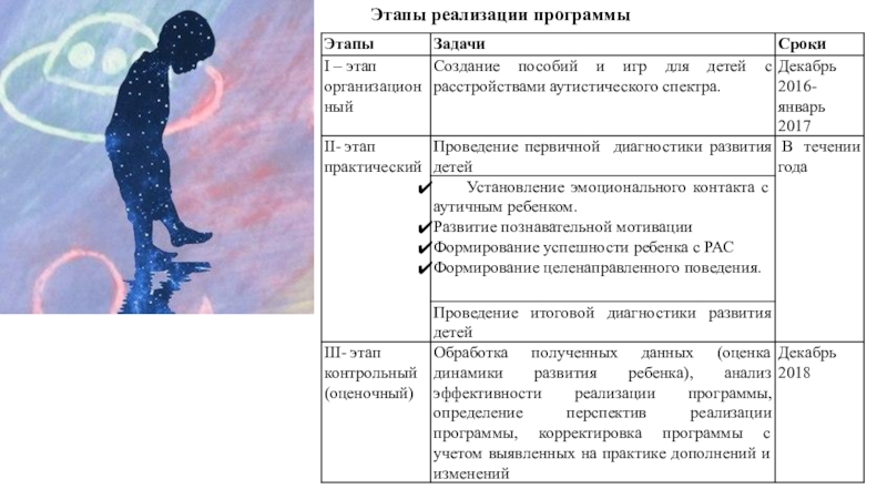 5. Распределить детей с расстройствами аутистического спектра для индивидуальной работы.