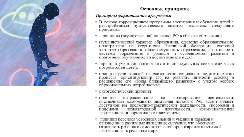 обучения детей с расстройствами аутистического спектра положены следующие принципы: