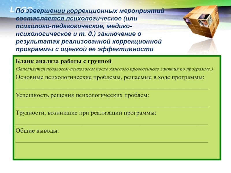 Бланк анализа работы с группой