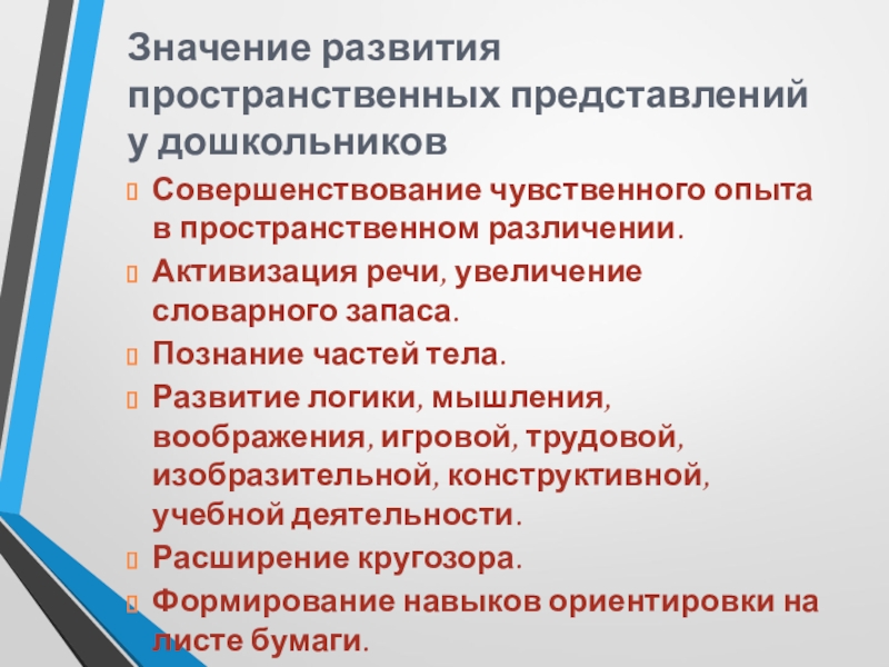 и упражнения, направленные на обучение пространственной ориентировке дошкольников c ОВЗ
