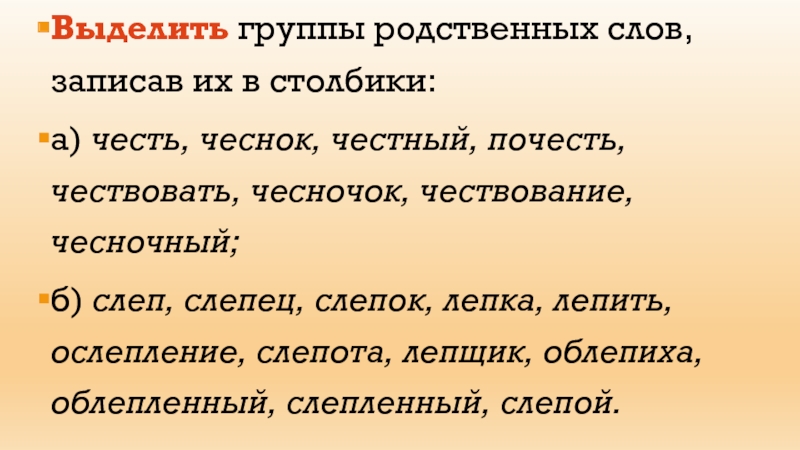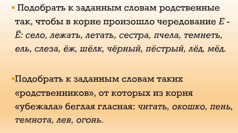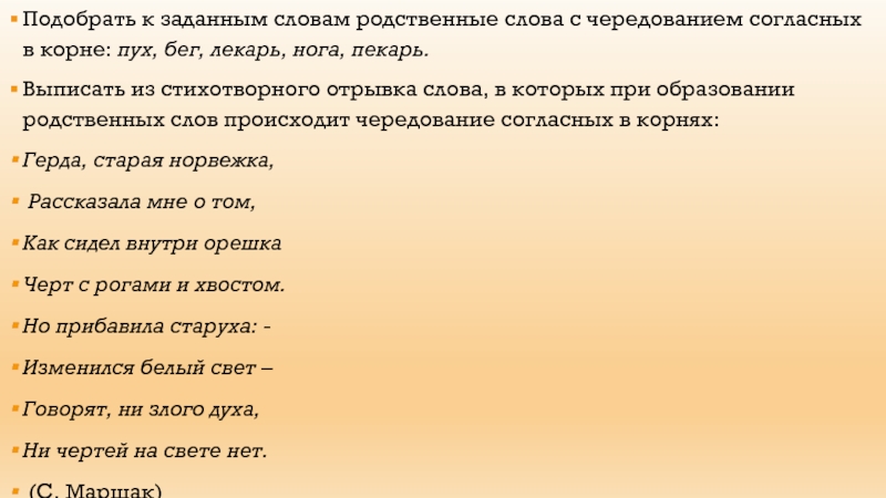 в) из последних слогов заданных слов, например, смола, слеза, берет (лазарет);