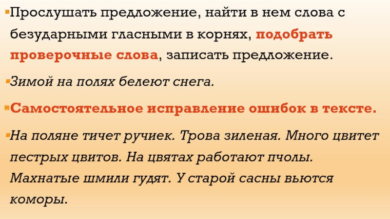 Высоко вгоры в полз уж. Папа внес в комнату корзину сяблоками. Уж выполз изклетки и по полз по полу. Ласточка за цепилась за край нитки. Ребята шли поузенькой тропинке. Коля бежал засобакой, собака бежала за кошкой. Осень на ступила, высохли цветы. Елочка на рядная в комнате стоит.