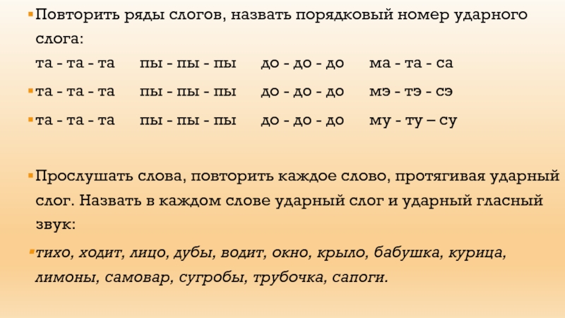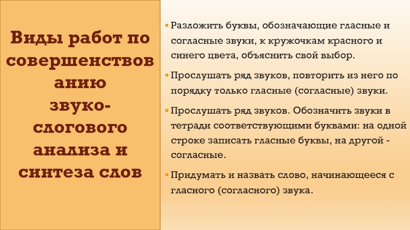 Прослушать ряд звуков, повторить из него по порядку только гласные (согласные) звуки.