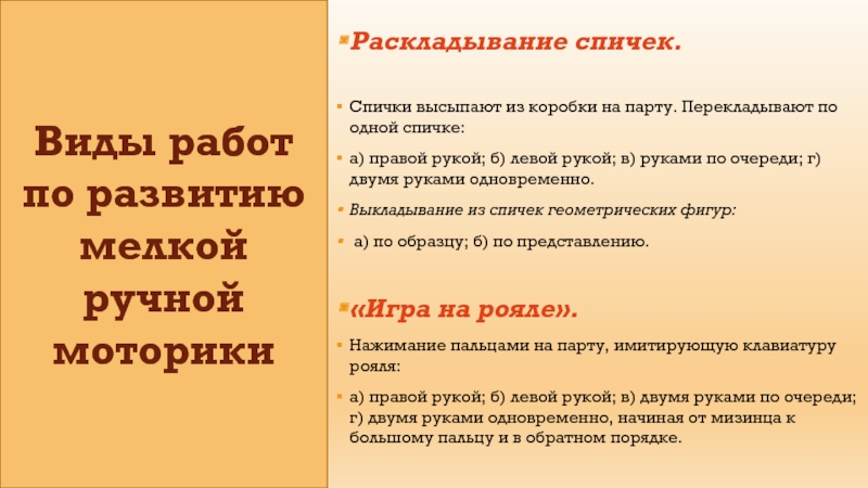 Спички высыпают из коробки на парту. Перекладывают по одной