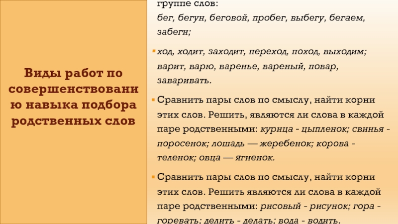 Слайд 37Виды работ по совершенствованию навыка дифференциации предлогов и приставок