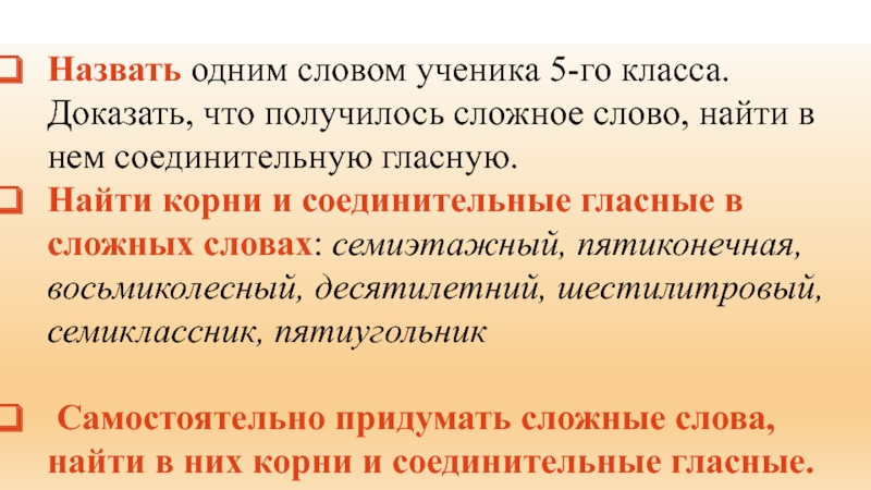 Слайд 34Назвать одним словом ученика 5-го класса. Доказать, что получилось сложное слово,