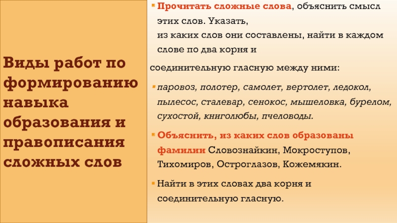 соединительные гласные. При повторном прослушивании записать сложные слова.