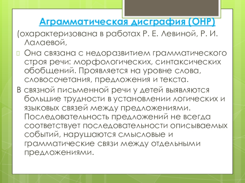 Слайд 8Аграмматическая дисграфия (ОНР)