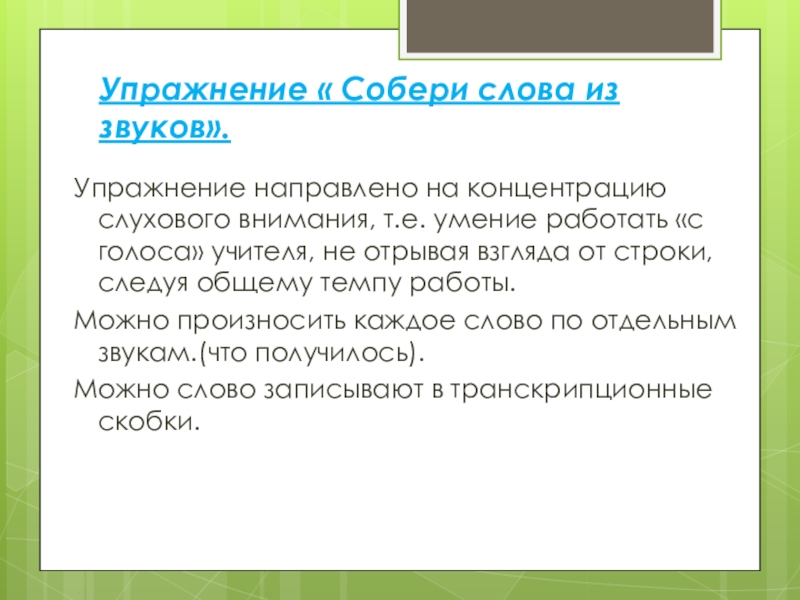 Суть уроков – тренировка речевого слуха и буквенного зрения.