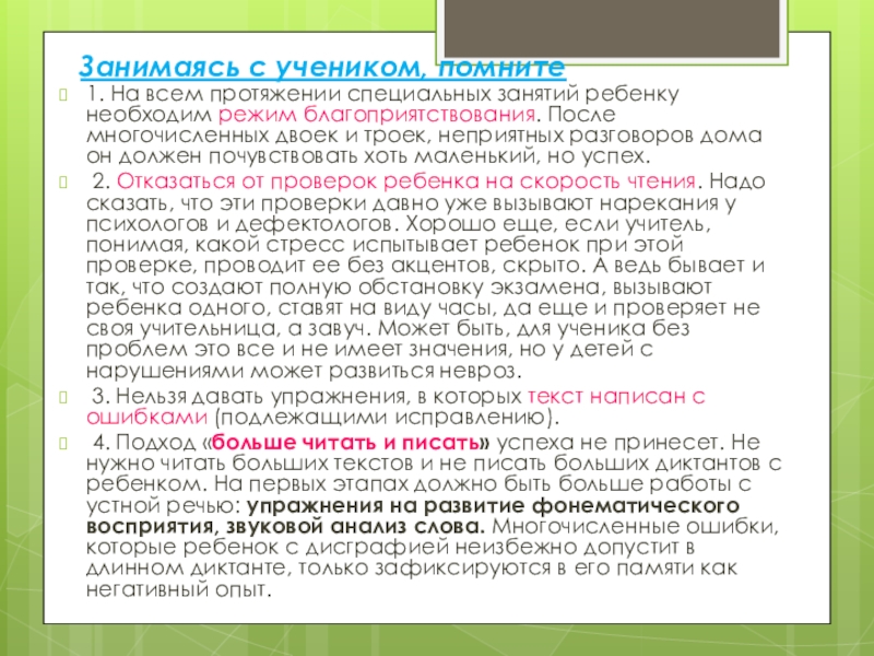 3. Нельзя давать упражнения, в которых текст написан с ошибками (подлежащими исправлению).