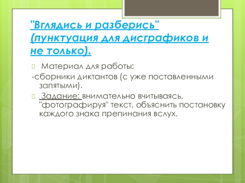 Слайд 17"Вглядись и разберись" (пунктуация для дисграфиков и не только).