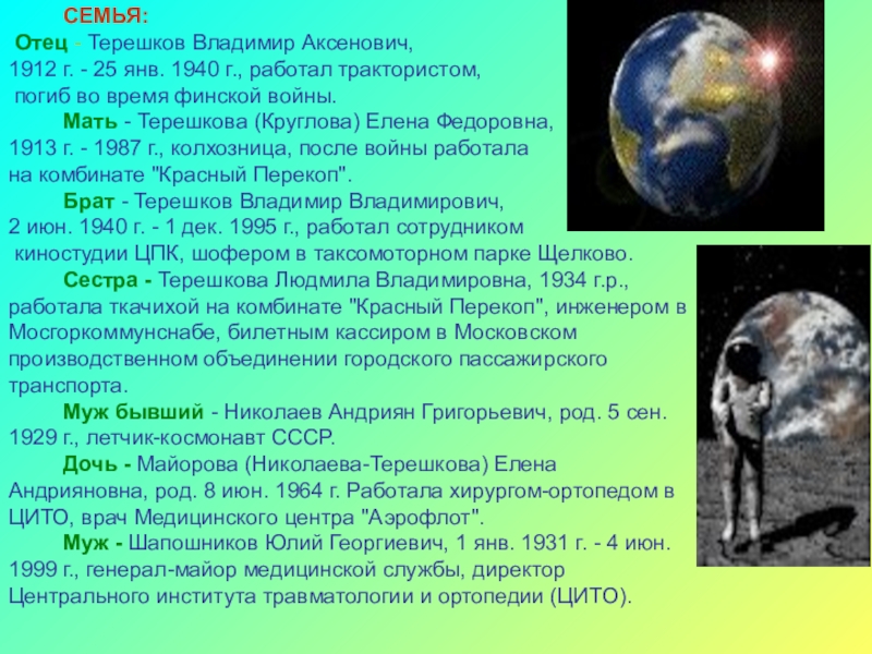 Брат - Терешков Владимир Владимирович,