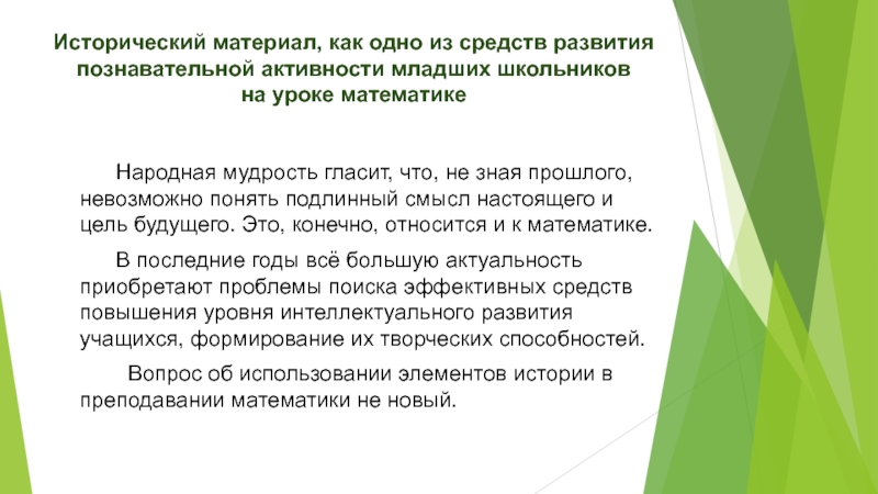 Слайд 5Исторический материал, как одно из средств развития познавательной активности младших школьников