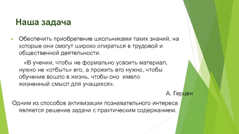 Одним из способов активизации познавательного интереса является решение задачи с практическим содержанием.