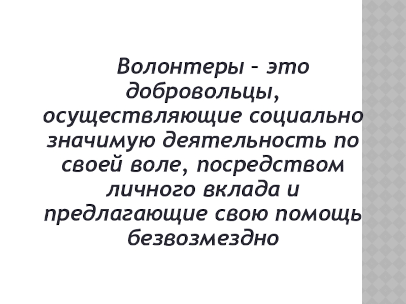 Волонтеры – это добровольцы, осуществляющие социально значимую деятельность по своей воле,