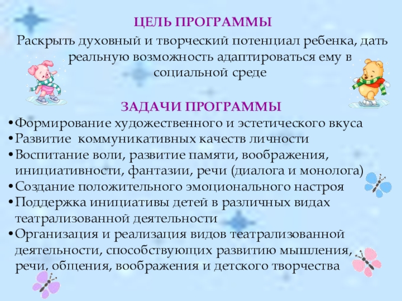 Воспитание воли, развитие памяти, воображения, инициативности, фантазии, речи (диалога и монолога)