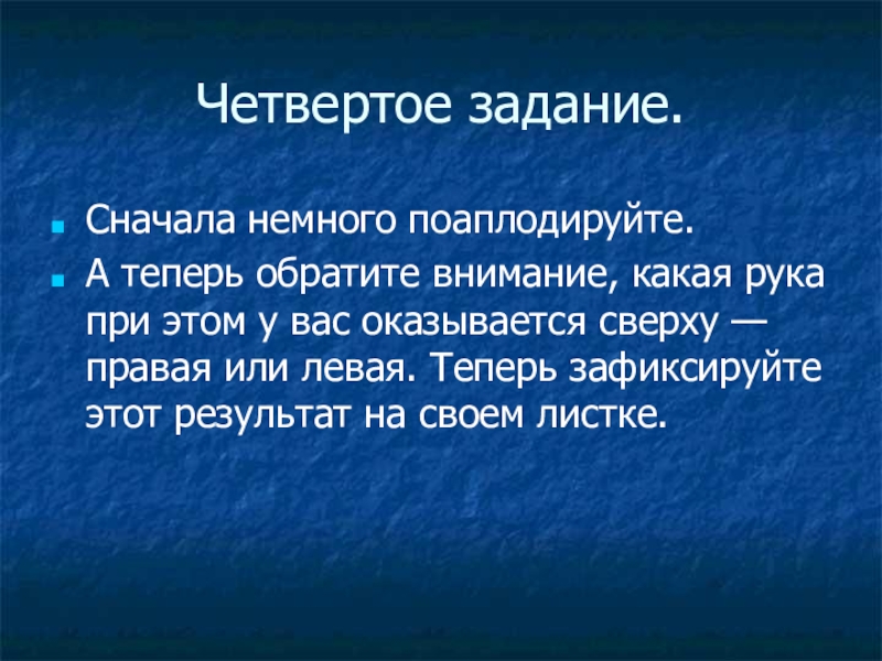 у вас оказывается сверху — правая или левая. Теперь зафиксируйте этот результат на своем листке.