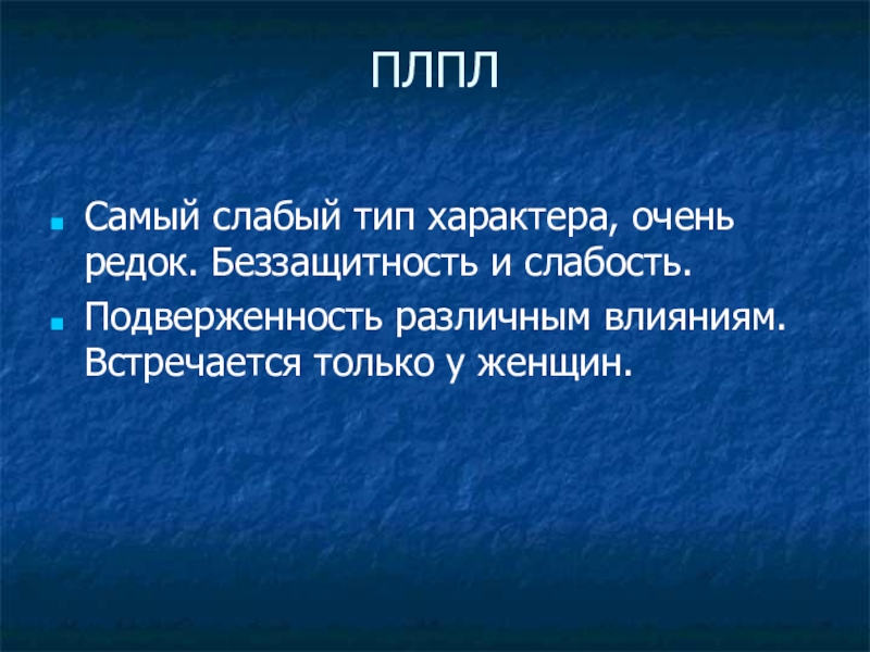 Самый слабый тип характера, очень редок. Беззащитность и слабость.