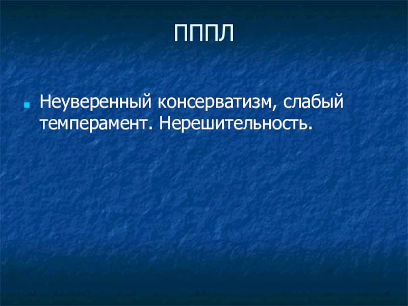 Неуверенный консерватизм, слабый темперамент. Нерешительность.