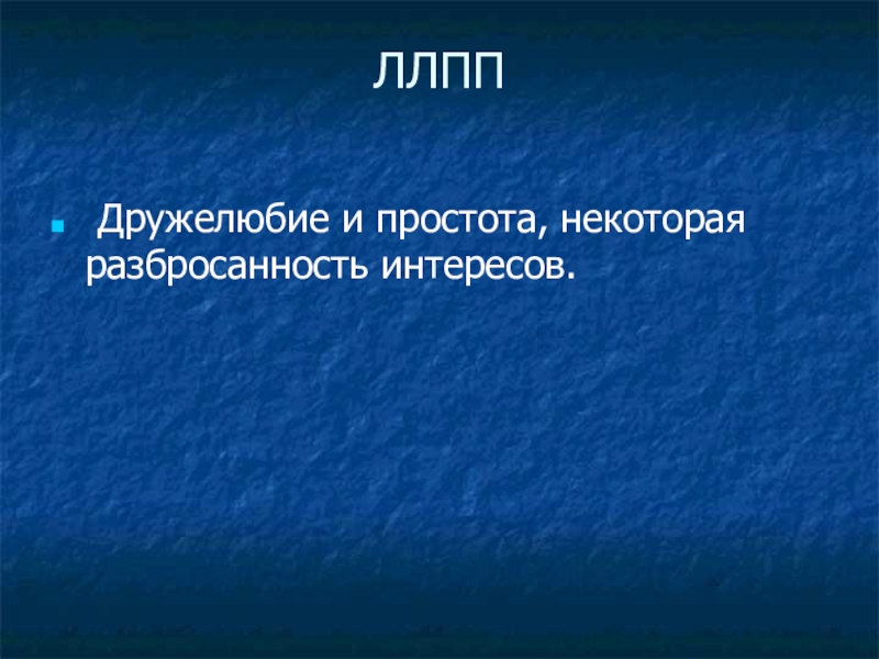 Дружелюбие и простота, некоторая разбросанность интересов.