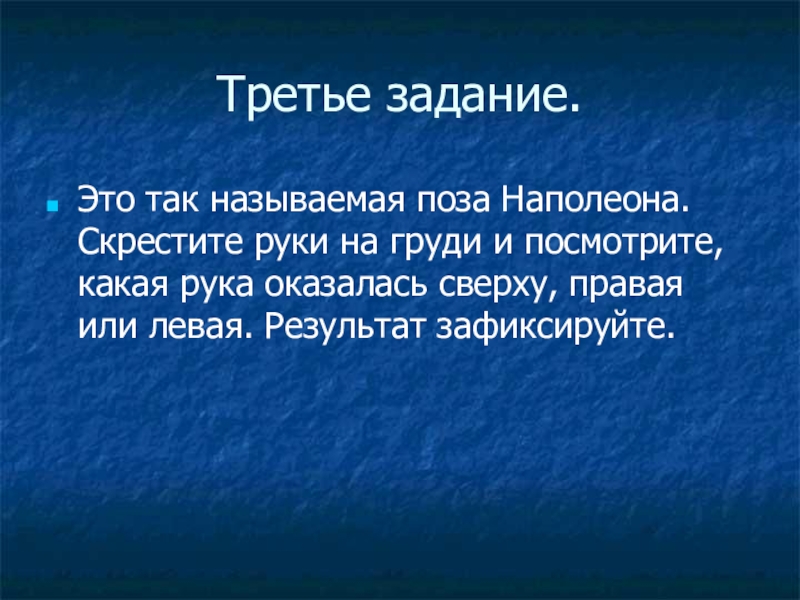посмотрите, какая рука оказалась сверху, правая или левая. Результат зафиксируйте.