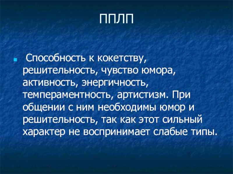 агрессивность, прикрытая внешней мягкостью и эмоциональностью. Быстрое взаимодействие, но медленное взаимопонимание.