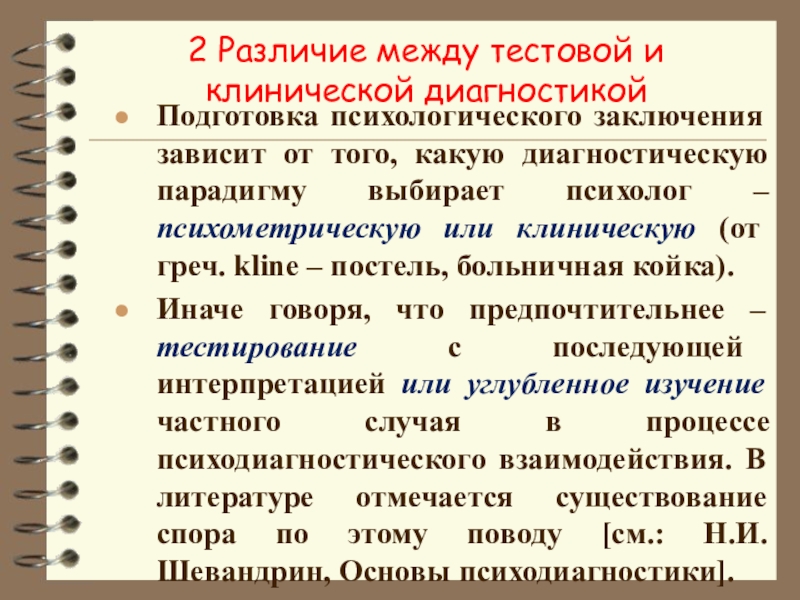 того, какую диагностическую парадигму выбирает психолог – психометрическую или клиническую (от греч. kline – постель, больничная койка).