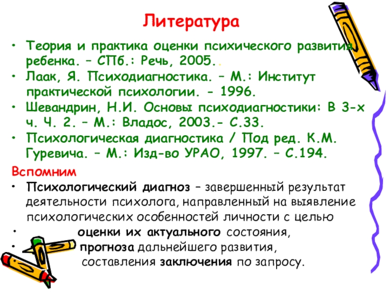 Теория и практика оценки психического развития ребенка. – СПб.: Речь, 2005..