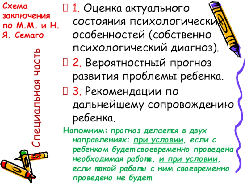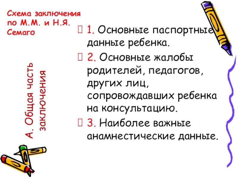 Слайд 30Схема заключения по М.М. и Н.Я. Семаго