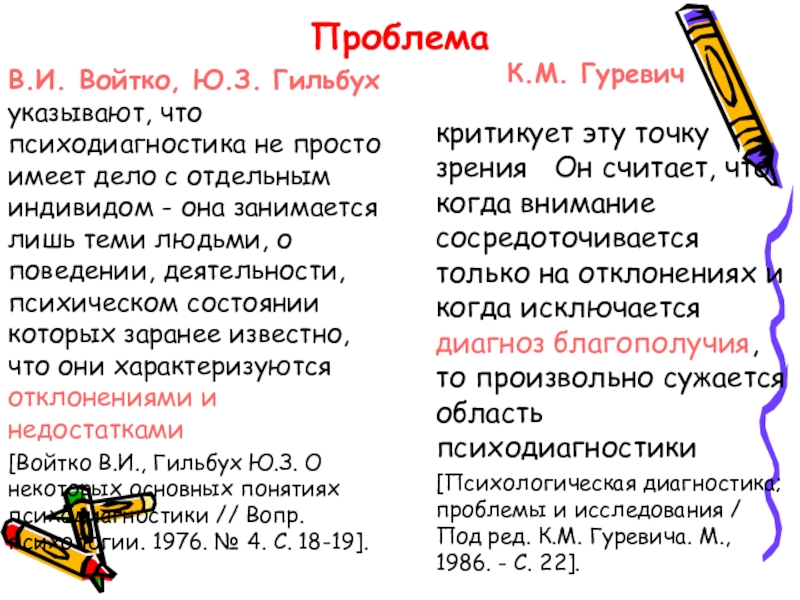 [Войтко В.И., Гильбух Ю.З. О некоторых основных понятиях психодиагностики // Вопр. психологии. 1976. № 4. С. 18-19].