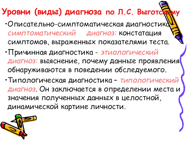 Слайд 39Уровни (виды) диагноза по Л.С. Выготскому