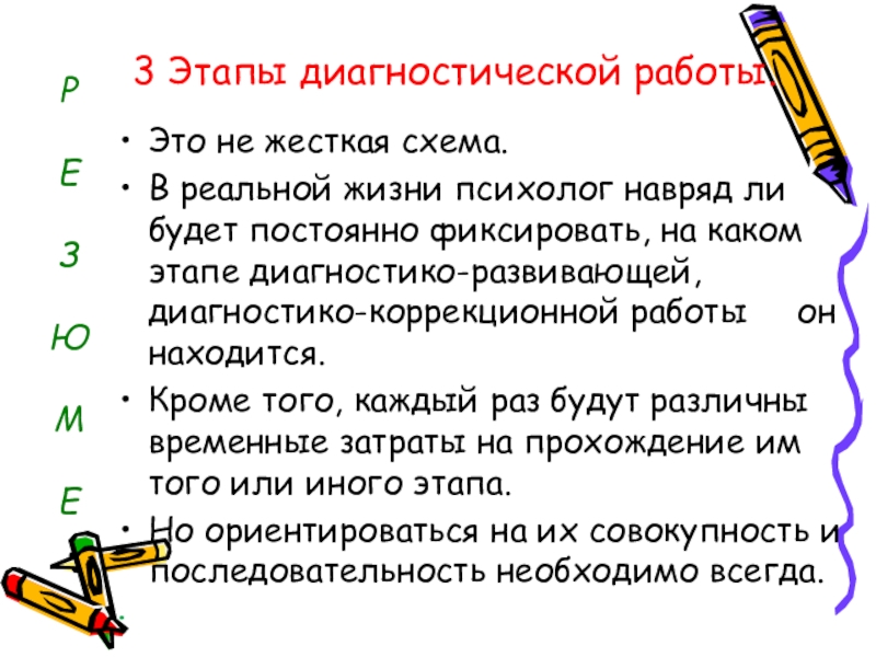 психолог навряд ли будет постоянно фиксировать, на каком этапе диагностико-развивающей, диагностико-коррекционной работы он находится.