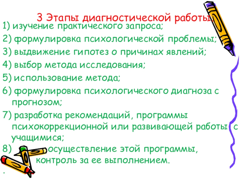7) разработка рекомендаций, программы психокоррекционной или развивающей работы с учащимися;
