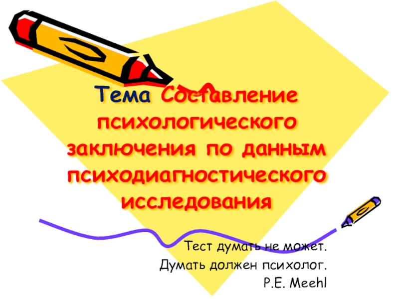 Слайд 2Тема Составление психологического заключения по данным психодиагностического исследования