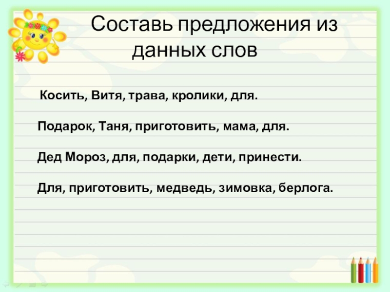Слайд 12 Составь предложения из данных слов