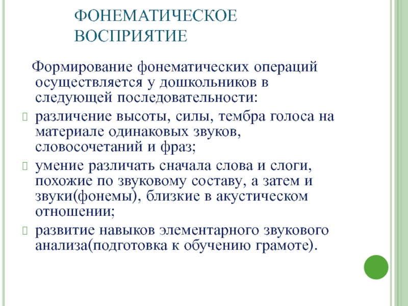 Слайд 13ФОНЕМАТИЧЕСКОЕ ВОСПРИЯТИЕ
