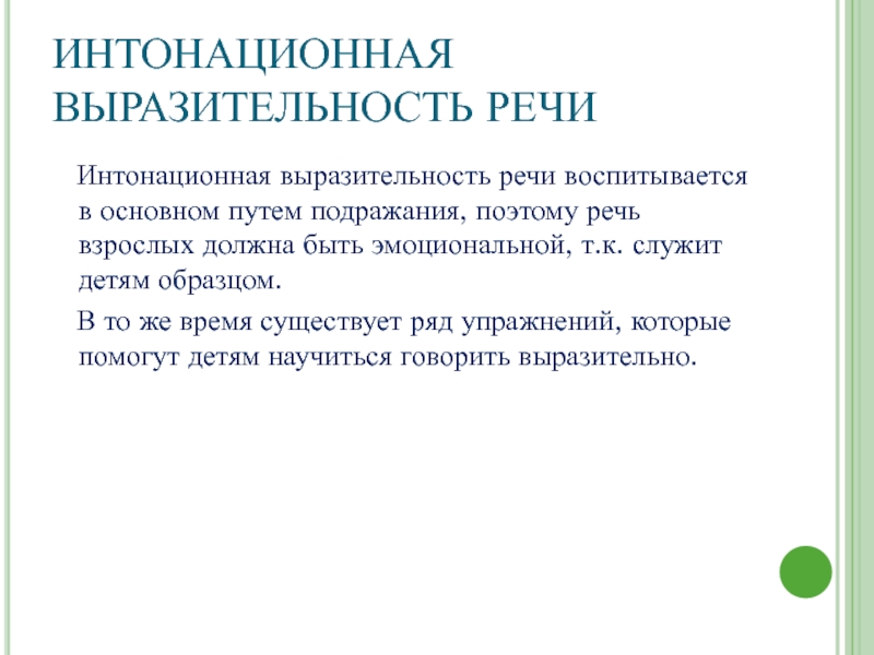 подражания, поэтому речь взрослых должна быть эмоциональной, т.к. служит детям образцом.
