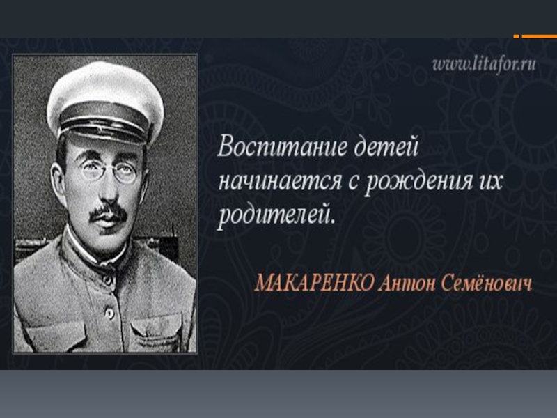 Советский педагог и писательАнто́н Семёнович Мака́ренко (1 (13) марта 1888, Белополье, ныне Сумская область, Украина — 1 апреля 1939, Голицыно, Московская область) — советский педагог и писатель.Согласно позиции ЮНЕСКО (1988) А. С. Макаренко отнесён к четырём