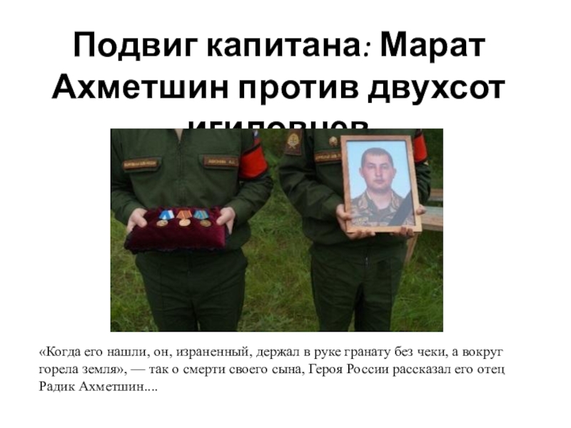 держал в руке гранату без чеки, а вокруг горела земля», — так о смерти своего сына, Героя России рассказал его отец Радик Ахметшин....