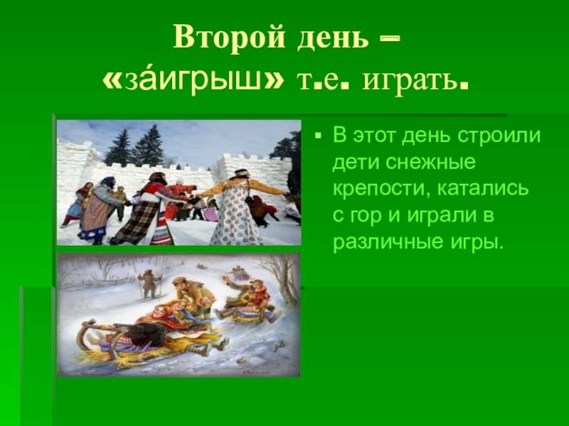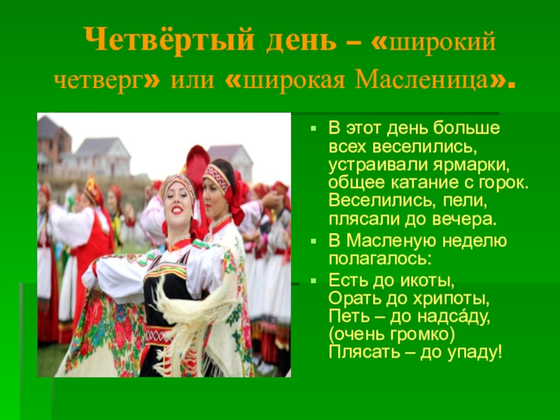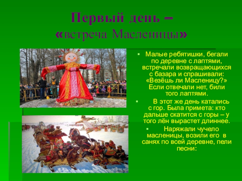 Создать условия для введения понятия «Широкая масленица».