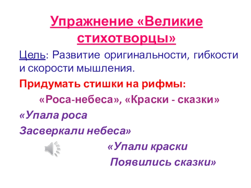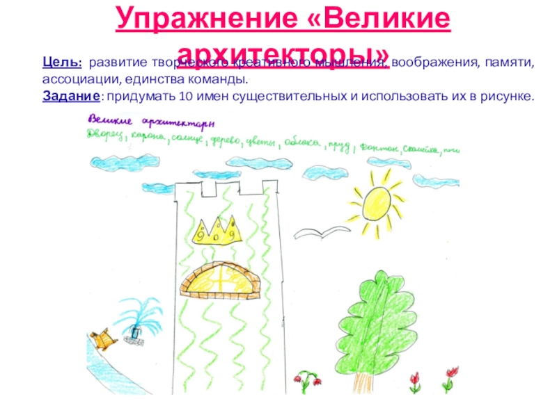 Цель: развитие творческого креативного мышления, воображения, памяти, ассоциации, единства