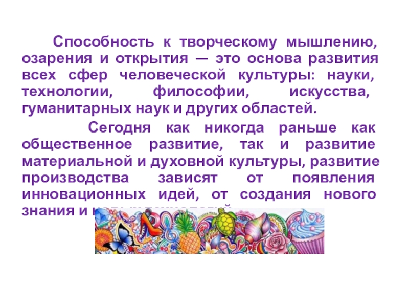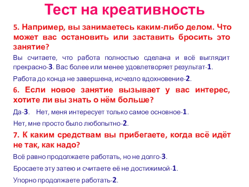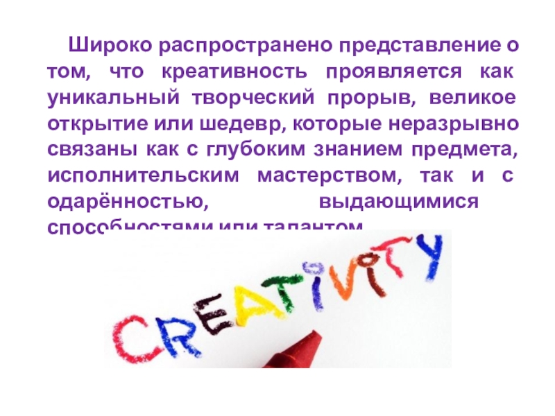 Слайд 6 Широко распространено представление о том, что креативность проявляется как