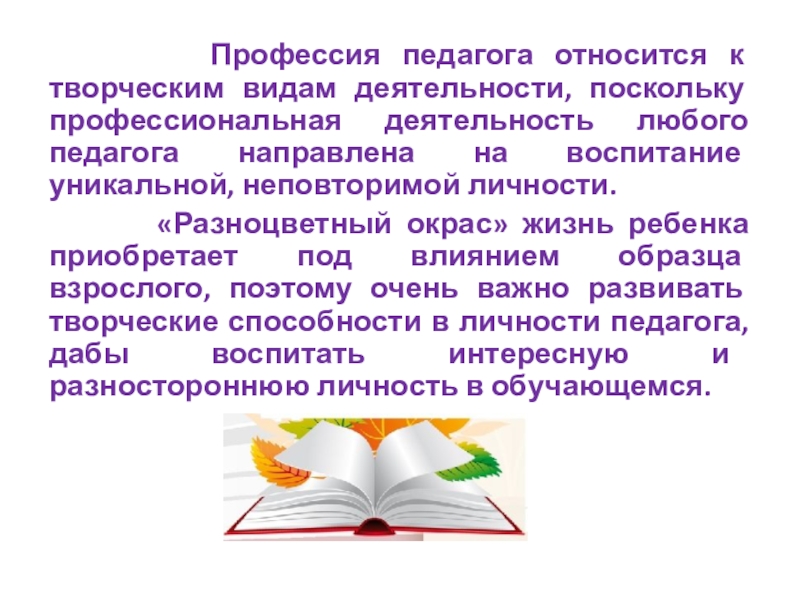 поскольку профессиональная деятельность любого педагога направлена на воспитание уникальной, неповторимой личности.