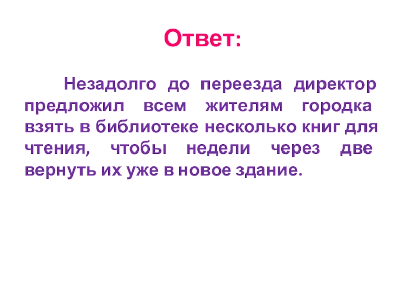 в библиотеке несколько книг для чтения, чтобы недели через две вернуть их уже в новое здание.