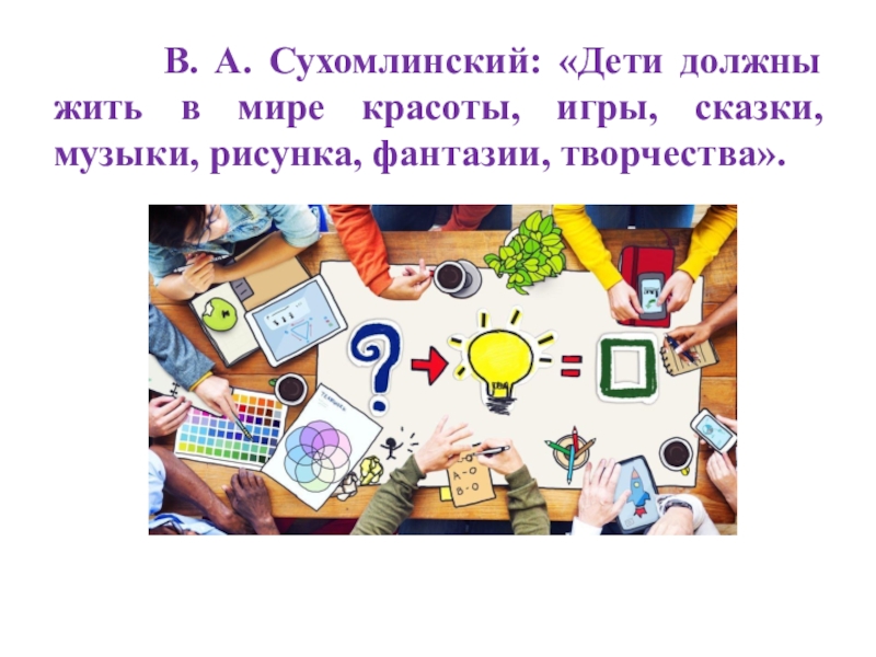 Слайд 8 В. А. Сухомлинский: «Дети должны жить в
