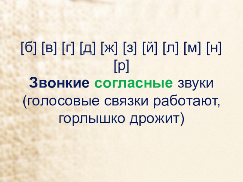 согласные звуки (голосовые связки работают, горлышко дрожит)