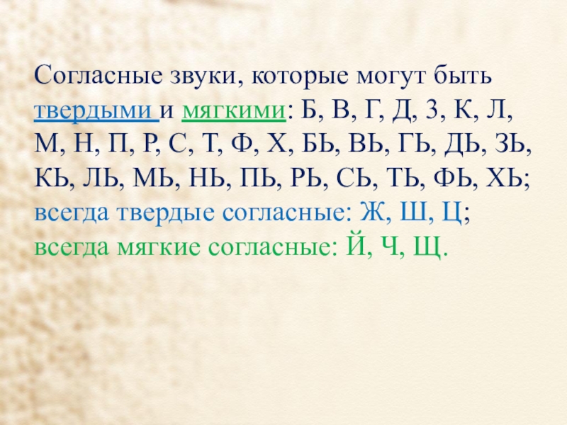 Слайд 8Согласные звуки, которые могут быть твердыми и мягкими: Б, В, Г,
