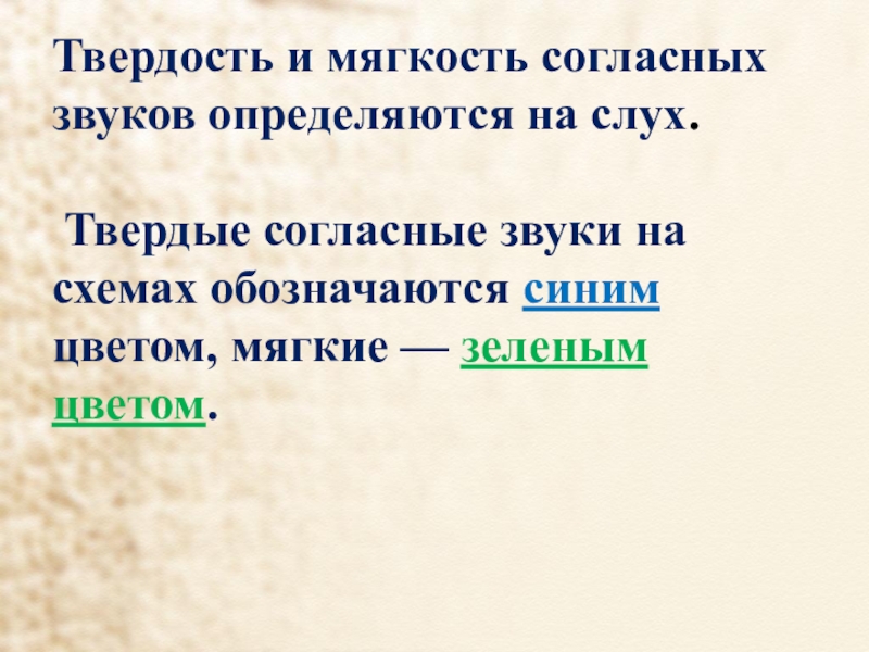 Слайд 7Твердость и мягкость согласных звуков определяются на слух.