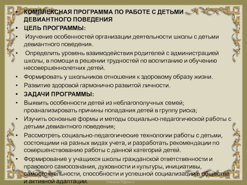Комплексная целевая программа по работе с детьми девиантного поведения